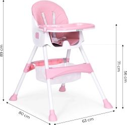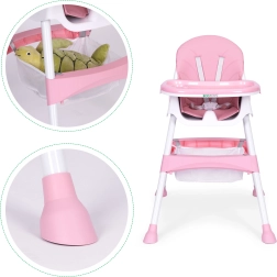 Scăunelul de masă ECOTOYS pentru copii de la 6 la 36 de luni îmbină o construcție stabilă cu un șezut confortabil. Are tăviță dublă detașabilă, compatibilă cu mașina de spălat vase, centură de siguranță în 5 puncte, picioare antiderapante și un coș de depozitare sub șezut. Datorită greutății reduse și construcției pliabile, se transportă și se depozitează ușor.
