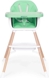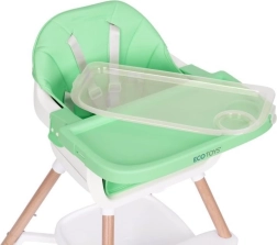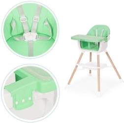 Scăunelul practic de masă pentru copii 2 în 1 de la ECOTOYS combină scaunul înalt cu un înălțător fixabil pe un scaun obișnuit. Oferă o construcție stabilă cu picioare metalice, tavă dublă ușor de curățat și compatibilă cu mașina de spălat vase, centură de siguranță în 5 puncte, capete antiderapante și suport pentru picioare. Ideal pentru copii de la 6 la 36 de luni, cu o capacitate de încărcare de 20 kg.