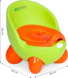 Olița pentru copii de la ECOTOYS oferă un design funcțional, atrăgător pentru copii, ceea ce le susține independența în învățarea folosirii toaletei. Datorită stabilității și spătarului ergonomic, oferă confort maxim și susține postura corectă a corpului.