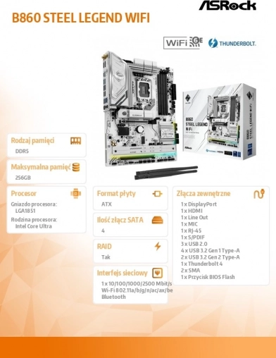 B860 Steel Legend WiFi este proiectată cu accent pe soliditate și atractivitate estetică. Această placă de bază este destinată atât utilizatorilor obișnuiți, cât și entuziaștilor. Oferă performanță stabilă și fiabilă datorită materialelor și componentelor de calitate.
