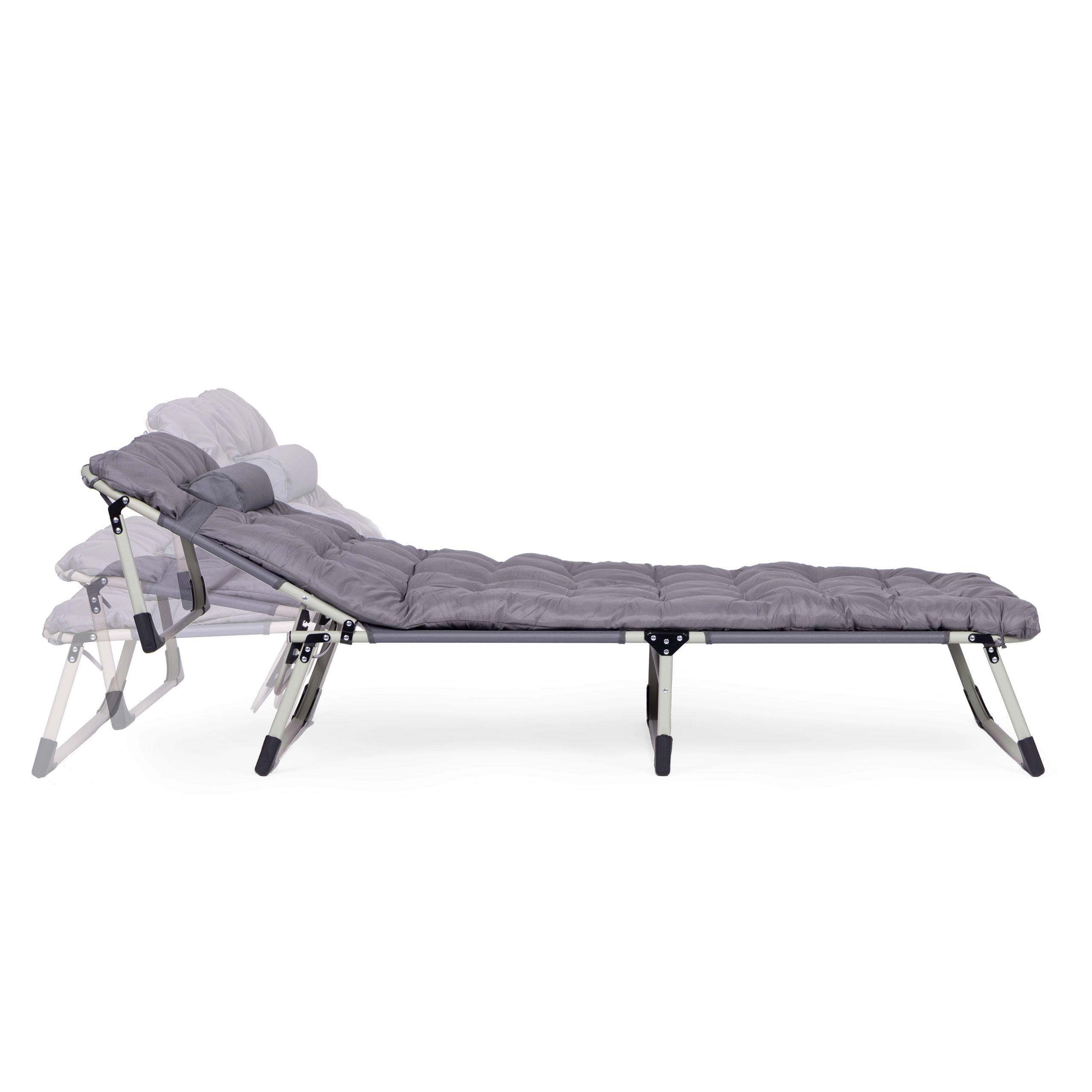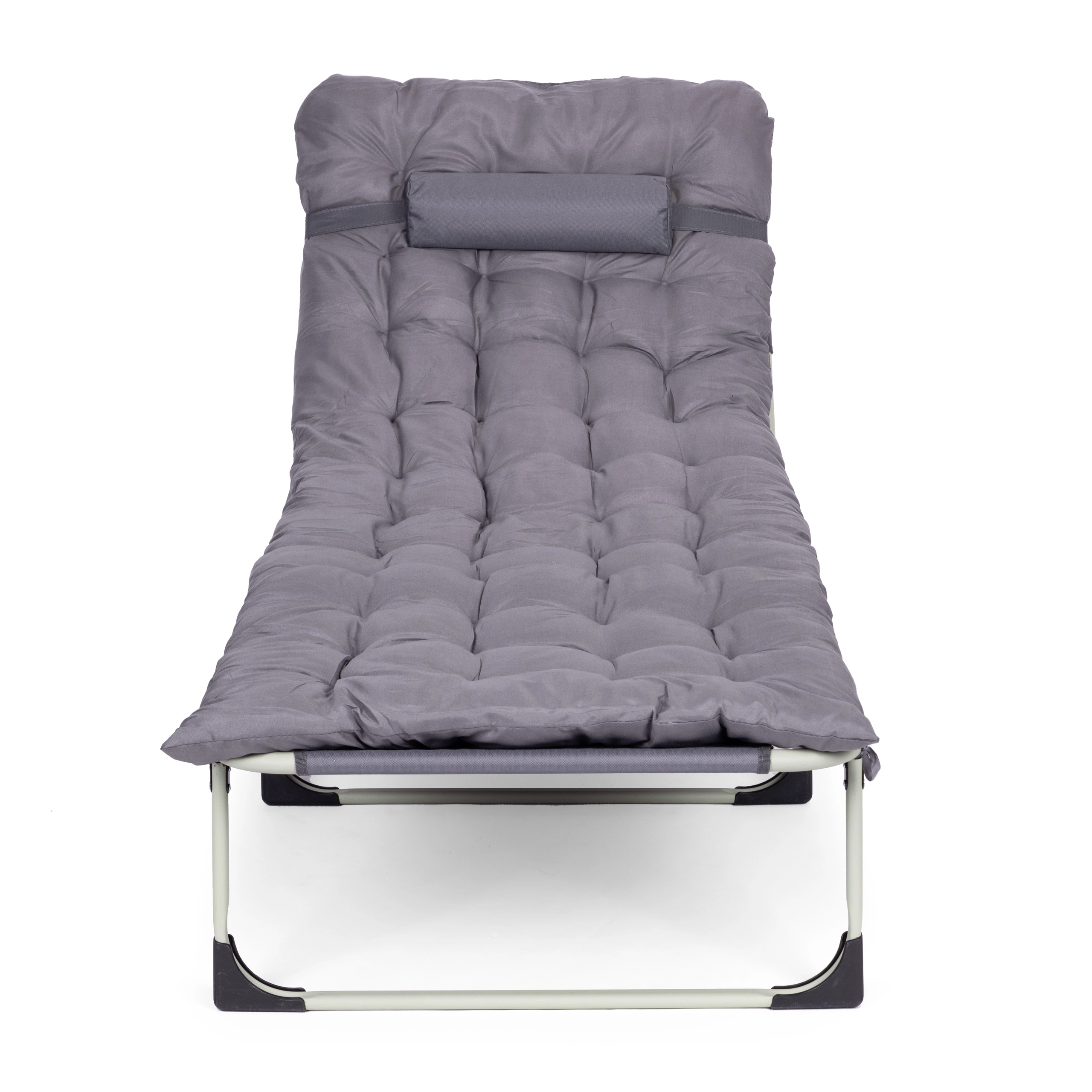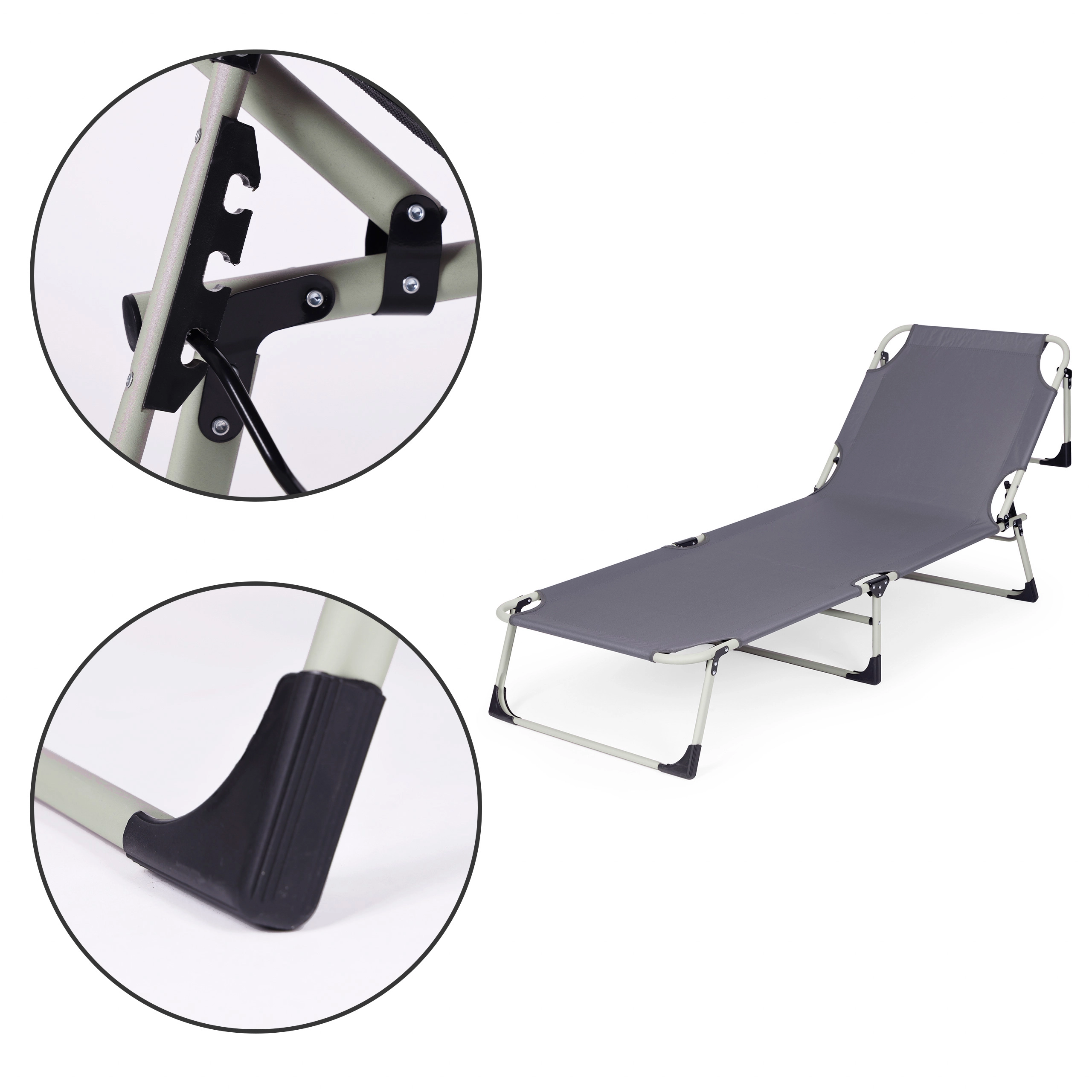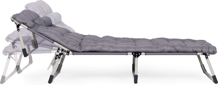Practic și reglabil, șezlongul în nuanță gri universală este creat pentru relaxare la apă, în grădină sau în călătorii. Salteaua groasă, căptușită, și pernița detașabilă sporesc confortul la ședere sau întins, în timp ce spătarul ajustabil în 4 unghiuri permite trecerea rapidă din poziția de relaxare la întins complet.