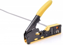 Instrument profesional pentru instalări de rețea, care combină într-un singur corp sertizarea, tăierea și dezizolarea. Cleștele de sertizare DIGITUS este compatibil cu conectori trecuți RJ45 (8P8C) categoriile 5e și 6, inclusiv variante ecranate și ne-ecranate, și suportă de asemenea RJ12 (6P6C) și RJ11 (6P4C). Rezultatul: lucru mai rapid, mai puține erori și fiabilitate maximă a conexiunilor.