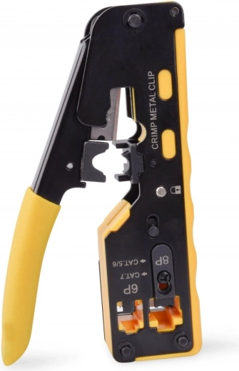 Sertizează, dezizolează și taie. Cuțitele și dezizolatorul integrate ușurează pregătirea și montajul rapid al conexiunilor de rețea.