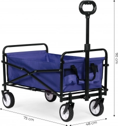 Acest cărucior practic este o soluție excelentă pentru munca în grădină, transportul cumpărăturilor sau ca ajutor pe plajă. Datorită mânerului confortabil, designului pliabil și construcției metalice solide, acest cărucior este ideal pentru orice situație și vă va ușura transportul diferitelor obiecte.