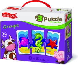 Seturile de puzzle Far Far Land trio oferă o lume uimitoare plină de imagini colorate. Fiecare set conține 8 imagini unice, care sunt compuse din 3 piese. Aceste puzzle-uri nu doar că sprijină creativitatea copiilor, ci și abilitatea lor de a conecta și diferenția diverse obiecte.