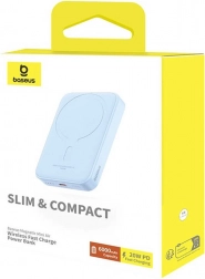 Bateria externă Baseus permite încărcarea atât prin USB-C, cât și fără fir. Puterea de încărcare de până la 20 W vă permite să încărcați dispozitivele extrem de rapid.