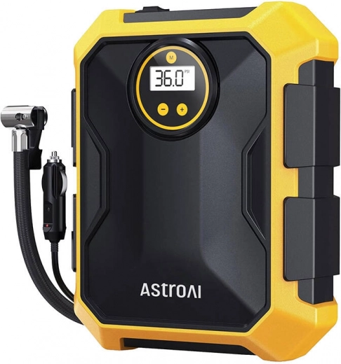 Compresorul practic ASTROAI 12V este conceput pentru umflarea rapidă și precisă a anvelopelor autoturismelor, bicicletelor, mingilor sportive și saltelelor. Afișajul digital permite monitorizarea presiunii în timp real și alegerea din mai multe unități. Datorită dimensiunilor compacte și spațiului de depozitare integrat pentru duze, aveți mereu toate accesoriile la îndemână.
