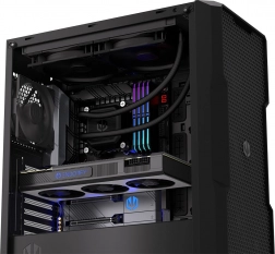 Perechea de ventilatoare de 140 mm cu pale profilate și margine ondulată asigură un flux de aer excelent prin radiatorul dens, menținând în același timp un nivel redus de zgomot.