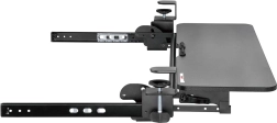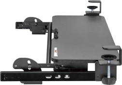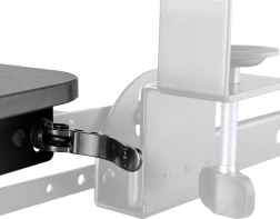 Suportul este echipat cu cleme ajustabile pentru o fixare simplă sub suprafața biroului, permițând o adaptare și instalare facilă.