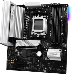 ASROCK B850M Pro RS WiFi este o placă mATX modernă construită pentru platforma AM5. Datorită etajului de alimentare 8+2+1 cu Dr.MOS oferă alimentare stabilă pentru procesoarele puternice AMD RYZEN, menținând totodată temperaturi scăzute. Suportul pentru patru module DDR5 în regim dual‑channel cu frecvențe de 8000+ (OC) duce productivitatea și gamingul la un nou nivel.