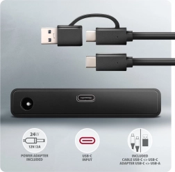 Pentru discurile de 3.5" pachetul include alimentator AC/DC 12V/2A (24 W), în timp ce SSD/HDD de 2.5" funcționează comod prin alimentare USB. Adaptorul suportă tehnologii moderne pentru durată lungă de viață și fiabilitate: UASP pentru transferuri mai rapide, TRIM pentru menținerea performanței SSD, monitorizare S.M.A.R.T., posibilitate de boot de pe discul conectat, Auto Spindown și Turn Off. Suprafața mată rezistă la amprente, iar dimensiunile reduse asigură că veți avea adaptorul mereu la îndemână.