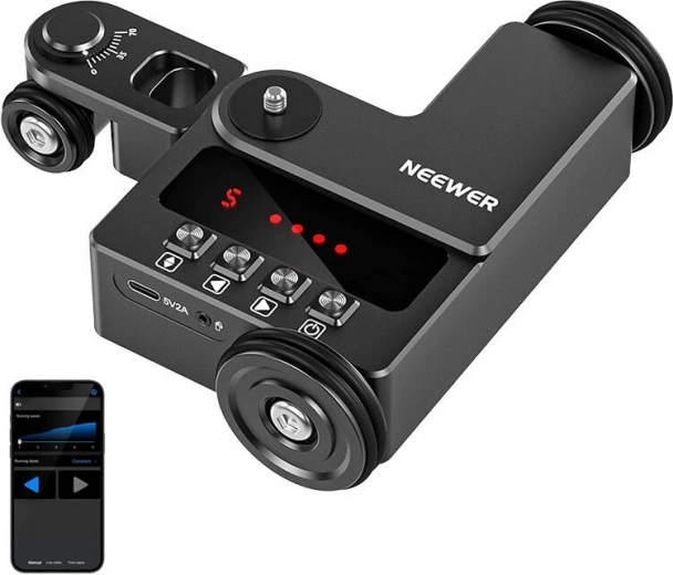 Căruciorul pentru cameră Neewer oferă control wireless prin aplicație pentru smartphone-urile IOS și Android. În aplicație, puteți alege dintre trei moduri: Manual, Video și Time-lapse, care vă permit să personalizați setările fiecărui proiect. Modul manual permite setarea direcției de mișcare, a vitezei și a modului în care căruciorul stabilește mișcarea, în timp ce în modul Video, puteți determina distanța de mișcare. Pentru fotografi care oferă time-lapse, modul Time-lapse oferă control complet asupra duratei expunerii, frecvenței cadrelor și capacităților de fotografiere dintr-un punct fix.<p>