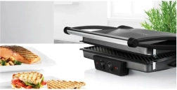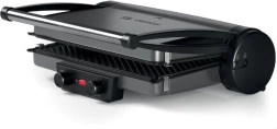 Bucătărie sănătoasă, rapidă, gustoasă – cele trei poziții de gătire la grătar oferă posibilități practic nelimitate pentru a încerca idei creative. Poziție închisă ca grătar de contact, deschisă ca grătar de masă, semi‑deschisă cu încălzire superioară și inferioară pentru coacere, gratinare sau reîncălzire. Fripturi suculente, hamburgeri delicioși, frigărui crocante aurii, toast, panini, sandvișuri sau focaccia – bucurați‑vă de ceea ce vă place. În plus, grătarul are plăci reversibile: cu suprafață striată și netedă, fiind astfel deosebit de potrivite pentru gătit cu conținut scăzut de grăsimi.