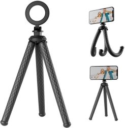 Trepiedul flexibil pentru telefoane permite capturarea unor cadre perfecte din aproape orice perspectivă. Cu picioare elastice care pot fi ușor înfășurate în jurul diverselor obiecte, este ideal pentru utilizare atât în interior, cât și în exterior. Indiferent dacă vrei să surprinzi frumusețea naturii, să creezi un vlog dinamic sau să faci un selfie perfect, acest trepied se adaptează oricărei situații și garantează stabilitatea și siguranța smartphone-ului tău.