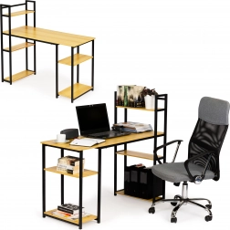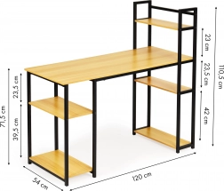 Biroul combină designul modern cu elemente practice. Suprafața mare de lucru oferă suficient spațiu pentru activități, în timp ce finisajul laminat rezistent asigură durabilitate și un aspect luxos. Sunt disponibile șase rafturi pe partea biroului pentru o organizare eficientă a spațiului de muncă.