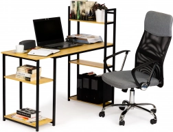 Biroul se remarcă prin combinația de stejar deschis și metal, oferind un aspect modern și industrial potrivit pentru orice birou sau spațiu de lucru.