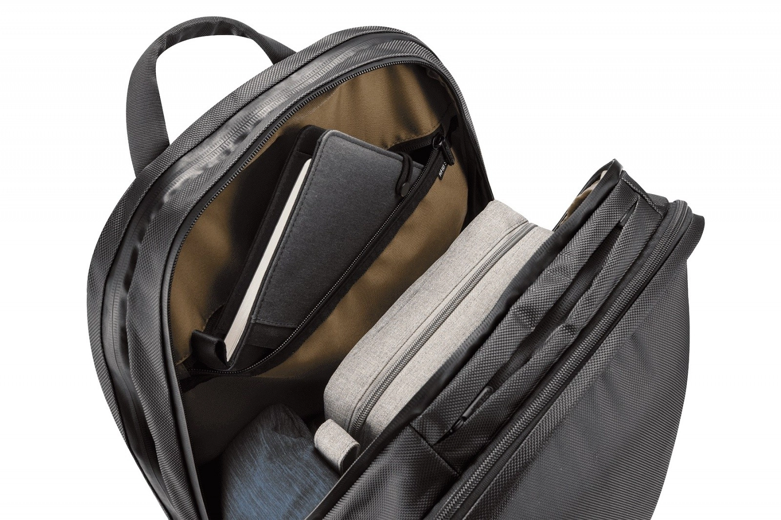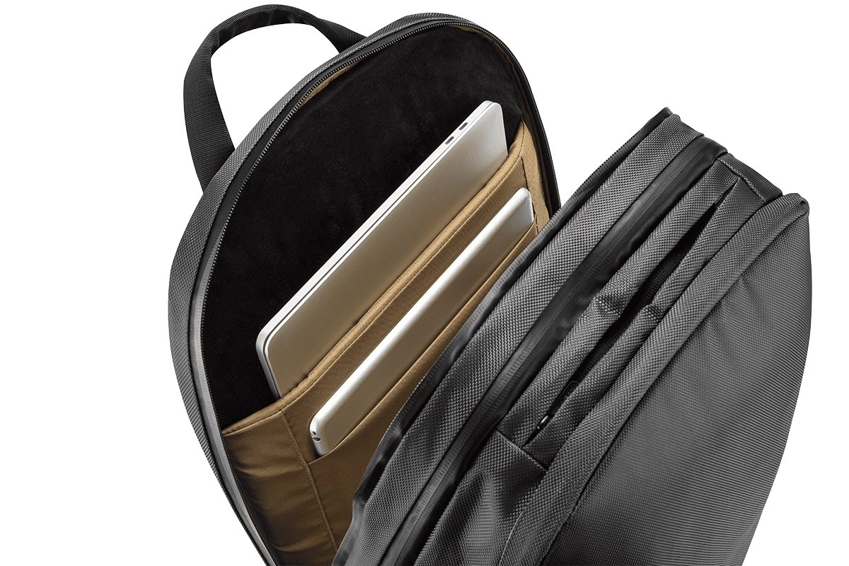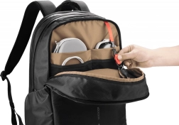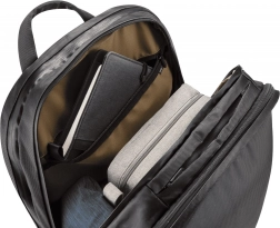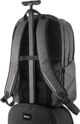 Compartimentul căptușit găzduiește un laptop de până la 17″ și o tabletă. Organizatorul și buzunarele interne păstrează totul ordonat la locul său.