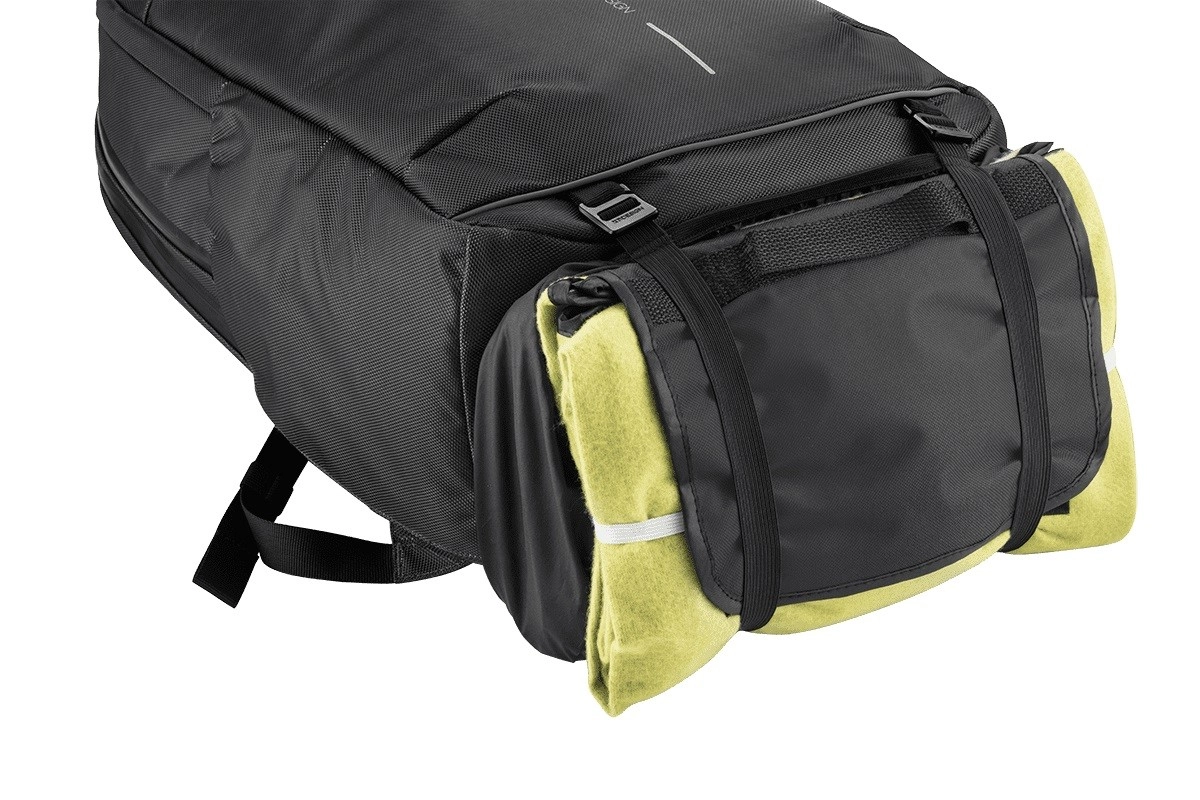 Buzunarul inferior extensibil este ideal pentru încălțăminte, rufe murdare sau ude. Volumul se ajustează ușor cu fermoarul superior de la 26 la 30 de litri. Nu lipsesc buzunarul lateral pentru sticlă, închiderea magnetică, elementele reflectorizante pentru vizibilitate și posibilitatea de fixare pe mânerul telescopic al trolerului.