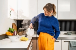 Designul său compact și practic facilitează depozitarea sa chiar și în spații mici, în timp ce filtrul integrat de decalcifiere asigură o durată lungă de viață a dispozitivului. Afișajul LED cu panou de control facilitează utilizarea.