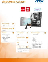 Placa de gaming B850 Gaming Plus WiFi se bazează pe platforma modernă AMD cu suport pentru procesoarele Ryzen 9000/8000/7000 și memorie dual‑channel rapidă DDR5 8200+ MT/s (OC). Datorită interfeței PCIe 5.0 pentru placa grafică și stocării Lightning Gen 5 x4 M.2, obții răspuns instant și FPS ridicat. Wi‑Fi 7 integrat și 5G LAN asigură conexiuni extrem de stabile și rapide.
