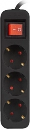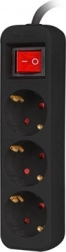 Acest prelungitor negru cu lungimea de 1,5 metri oferă trei prize Schuko, ideale pentru utilizare acasă și la birou.