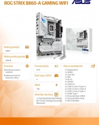 Placa de bază Asus ROG Strix B860-A Gaming WiFi este concepută pentru cei care caută performanță și stabilitate. Datorită suportului pentru procesoarele Intel Core Ultra și socketului LGA1851, oferă performanțe de neegalat chiar și în cele mai solicitante sarcini.