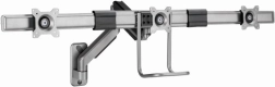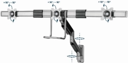 Suportul de perete pentru trei monitoare alăturate permite poziționarea precisă a ecranelor și economisirea maximă a spațiului pe birou. Construcția ușoară, dar robustă, cu arc pe gaz asigură echilibrare lină și reglaj confortabil cu o singură mână.