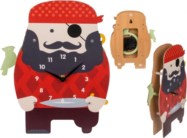 Cele mai amuzante ceasuri de perete în formă de pirat îmbogățesc perfect orice cameră de copii. Fabricat din placaj de lemn și ideal pentru băieți și fete.