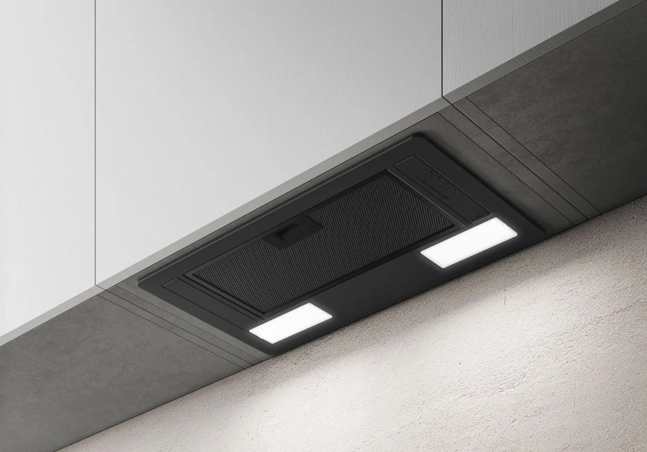 Hota ERA C, în negru atemporal, îmbină funcționalitatea cu estetica. Este concepută pentru a elimina în mod fiabil aburii și grăsimea din timpul gătitului, având totodată rolul unui element de design remarcabil în bucătărie.