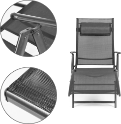 Spătar reglabil în 4 poziții permite relaxarea în cea mai confortabilă poziție, fie că vă bucurați de soare sau citiți o carte preferată.