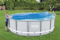 Husa solară pentru piscină BESTWAY este un accesoriu practic care crește confortul îmbăierii și reduce costurile de întreținere. Structura cu bule folosește energia solară pentru încălzirea apei și în același timp minimizează pierderile de căldură. Datorită formei circulare precise, se potrivește perfect piscinelor cu diametrul de 4,62 m.