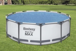 Prelata solară Bestway este soluția perfectă pentru menținerea apei calde în piscina de grădină. Datorită structurii cu bule de aer, apa rămâne caldă mai mult timp și se încălzește mai rapid în zilele însorite. În plus, prelata protejează piscina de murdăria exterioară, cum ar fi frunzele sau insectele, reducând timpul necesar pentru curățarea manuală a suprafeței apei.