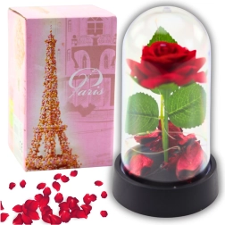 Trandafirul etern sub cupolă cu iluminare LED reprezintă un cadou elegant și simbolic, care exprimă cele mai profunde sentimente și conferă un caracter deosebit oricărui interior. Datorită luminii LED delicate și petalelor de trandafir, creează o atmosferă magică, ideală pentru ocazii romantice.