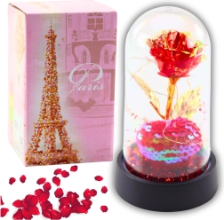 Descoperiți frumusețea trandafirului de cristal etern sub cupola transparentă, care prin eleganța sa va încânta pe oricine. Ideal pentru cei care doresc să dăruiască o expresie de dragoste ce nu se veștejește. Iluminarea LED oferă o lumină delicată trandafirului, ceea ce adaugă o atmosferă plăcută și romantică.