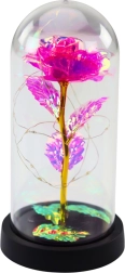 Trandafir de cristal sub cupolă cu iluminare LED este un cadou elegant și simbolic, care exprimă sentimentele tale și aduce un caracter deosebit în orice interior. Culorile sale schimbătoare sub influența luminii LED delicate creează o atmosferă de neuitat, ideală pentru ocazii romantice.