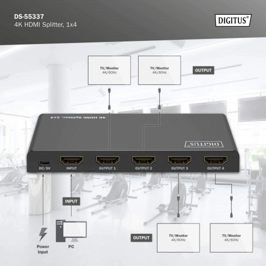 Distribuție semnal 1×4 la 4K/60 Hz