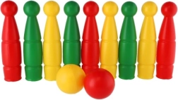 Acest set colorat de popice este excelent pentru utilizare interioară și exterioară. Copiii se vor distra construind și dărâmând popicele, îmbunătățindu-și astfel coordonarea și precizia. Setul include: