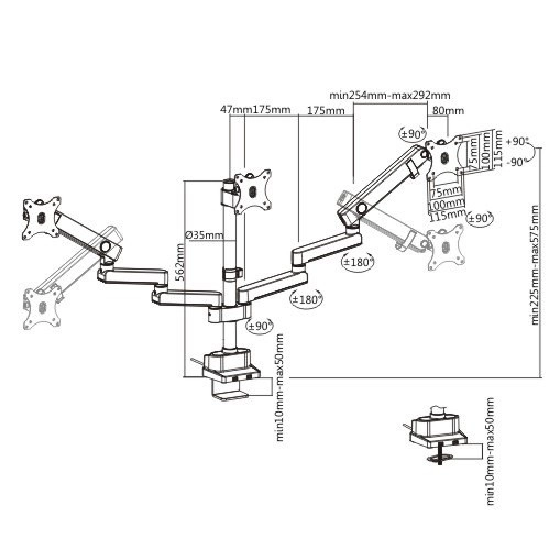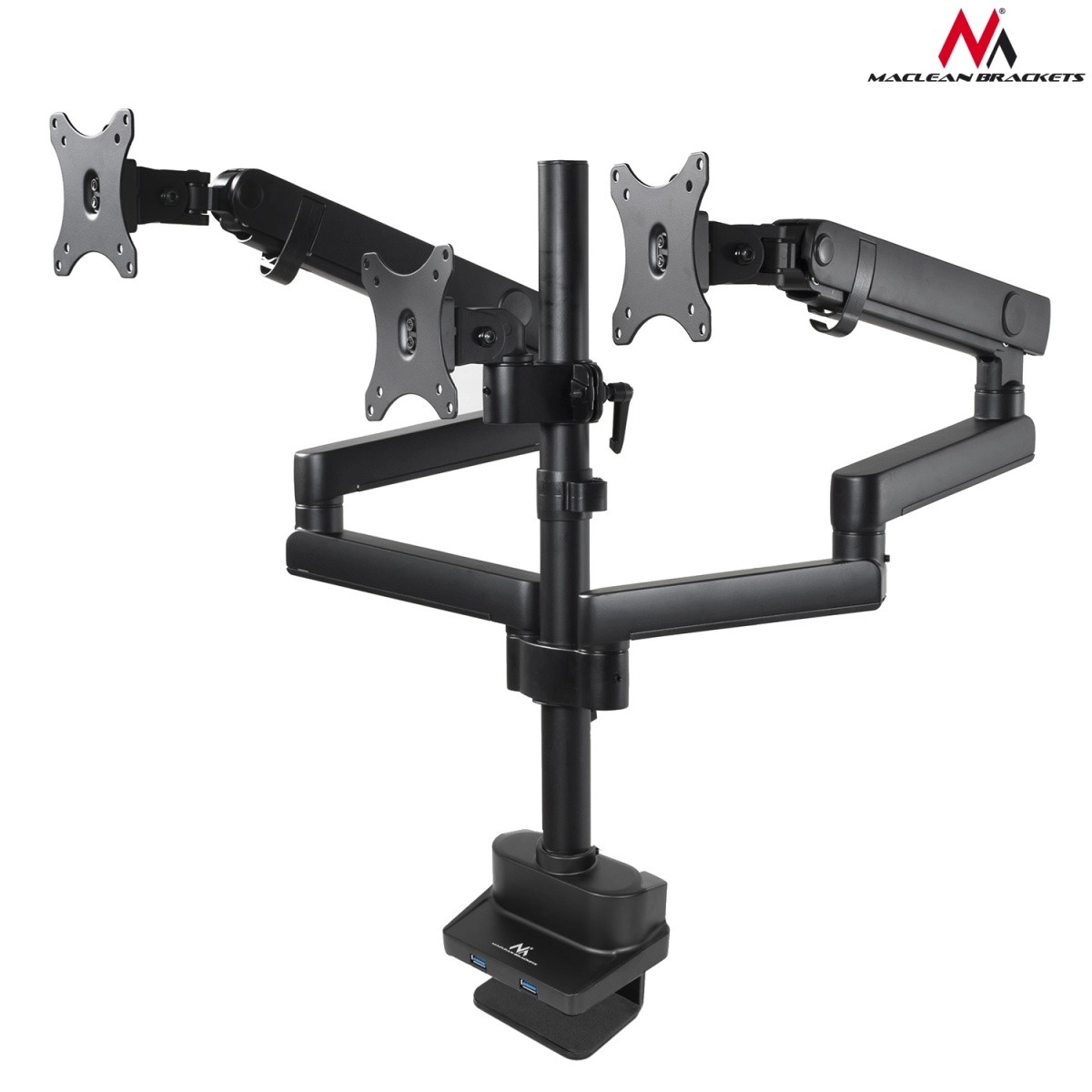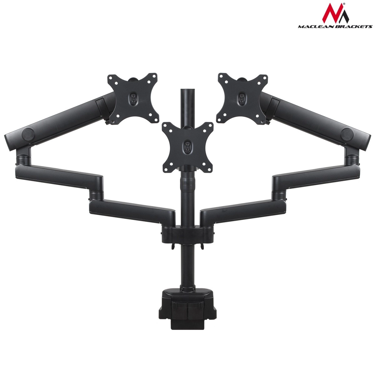 Acest suport profesional pentru trei monitoare este conceput pentru stații de lucru moderne, atât la birou, cât și acasă. Permite reglarea lină a înclinării, rotației și înălțimii, astfel încât să obții cu ușurință unghiul de vizualizare ideal, să reduci oboseala oculară și să susții o postură corectă. Construcția robustă din aluminiu asigură stabilitate și durată de viață îndelungată.