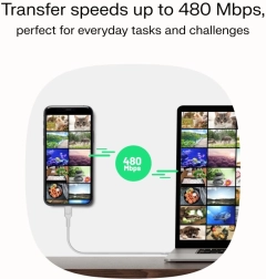 Datorită suportului pentru tehnologia USB Power Delivery (PD), acest cablu oferă încărcare ultra-rapidă a dispozitivelor dvs. până la 100 W. Transferul de date până la 480 Mbps asigură transferul eficient al datelor fără întârzieri inutile.