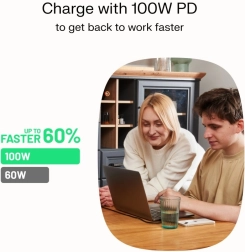 Oferă încărcare rapidă pentru dispozitive, de la căști la laptop-uri, datorită suportului USB Power Delivery.
