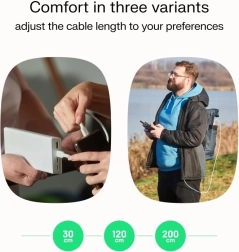 Alegeți lungimea care vi se potrivește. PowerStream oferă lungimi de 30 cm, 120 cm și 200 cm, permițându-vă să-l utilizați confortabil în funcție de nevoile actuale.