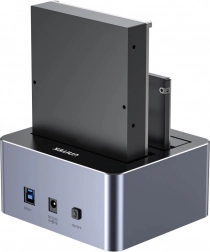 Datorită USB 3.0 (5 Gbps), suportului UASP și TRIM obțineți viteză și stabilitate maxime: până la 485 MB/s disc→disc și aprox. 405 MB/s disc→computer. Corpul din aluminiu disipă eficient căldura, LED-urile afișează starea alimentării și progresul clonării, iar după 30 de minute de inactivitate dispozitivul intră automat în repaus.