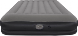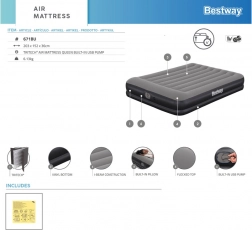 Pompa USB integrată umflă salteaua în 5–6 minute și este compatibilă cu adaptoare AC/DC și baterii externe – ideală când sunteți în deplasare. Perna integrată și suprafața plăcută, striată sporesc confortul la somn; dimensiunea de 152 × 203 cm găzduiește confortabil două persoane adulte.