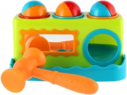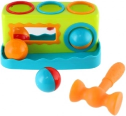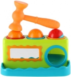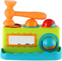 Acest banc de bătut colorat din plastic, cu lungimea de 21 cm, este o alegere excelentă pentru primele jocuri de dezvoltare. Copiii bat în siguranță cu ciocănelul cele trei bile în orificiile pregătite, antrenând priza, forța și precizia. Oglinda integrată pe partea frontală sporește interacțiunea și distracția.