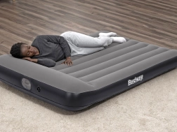 Salteaua gonflabilă pentru două persoane BESTWAY TRITECH oferă durabilitate ridicată, susținere stabilă și umflare rapidă în 3–4 minute datorită pompei USB integrate. Perna integrată, suprafața moale care împiedică alunecarea lenjeriei și capacitatea de încărcare de până la 300 kg o fac o soluție ideală pentru acasă, pentru oaspeți și pentru camping.
