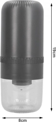 Recipientul transparent cu un volum de 150 ml oferă control asupra rezultatului, în timp ce controlul cu un singur buton garantează o utilizare intuitivă. Datorită dimensiunilor compacte, râșnița se potrivește în orice bucătărie și este excelentă și în călătorii – se conectează ușor la laptop, power bank sau încărcător.