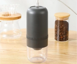 Râșniță electrică de cafea compactă cu încărcare USB-C, lame din oțel inoxidabil și grad de măcinare reglabil. Datorită recipientului transparent de 150 ml se poate verifica ușor cantitatea, controlul cu un singur buton asigură confort, iar construcția ușoară și portabilă este ideală acasă și în călătorii.