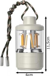 Datorită încărcării USB, lanterna este gata de utilizare în cca 4 ore și servește și ca powerbank pentru încărcarea de urgență a telefonului. Designul compact, cu frânghie rezistentă pentru agățare, permite amplasare ușoară în cort, pe o creangă sau cârlig. Ideală pentru camping, drumeții, pescuit, seri în grădină și ca soluție de iluminat de urgență acasă.