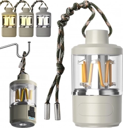 Lanteră de camping practică și robustă, cu baterie integrată și funcție de powerbank, oferă reglare lină a luminozității 20–180 lm, trei temperaturi de culoare (caldă/neutru/rece) și autonomie de până la 48 de ore. Datorită IPX4 face față ploii și umezelii, se încarcă prin USB în 4 ore și, datorită dimensiunilor compacte și frânghiei solide pentru agățare, este potrivită pentru cort, terasă și atelier.