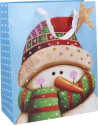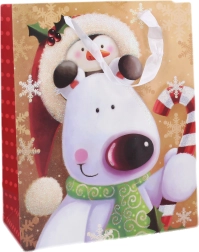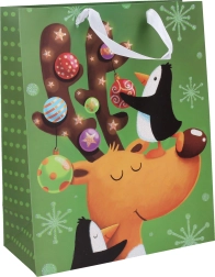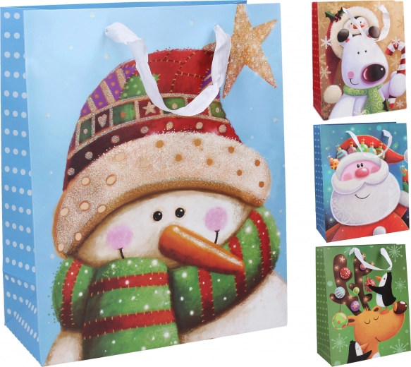 Pungă cadou de Crăciun excelentă de mărime medie, cu dimensiuni de 32x26x12 cm pentru ambalarea confortabilă a cadourilor dumneavoastră. Alegeți din 4 motive diferite pentru un aspect unic.